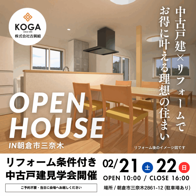 2026.01.082月21日(土)22日(日)朝倉市三奈木中古戸建オープンハウス開催!
